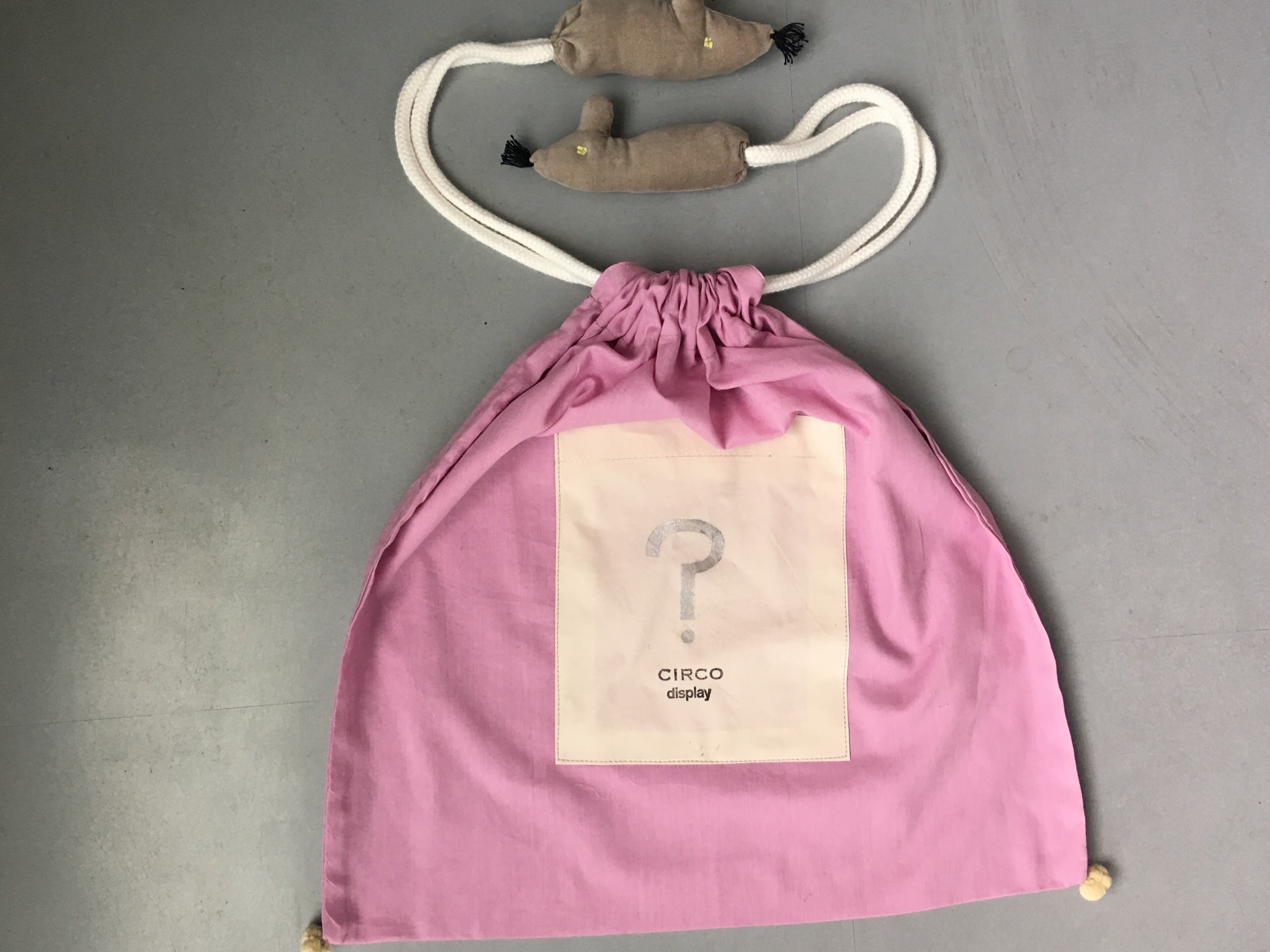 ネズミがモチーフで、ステンシルの?がポイント。