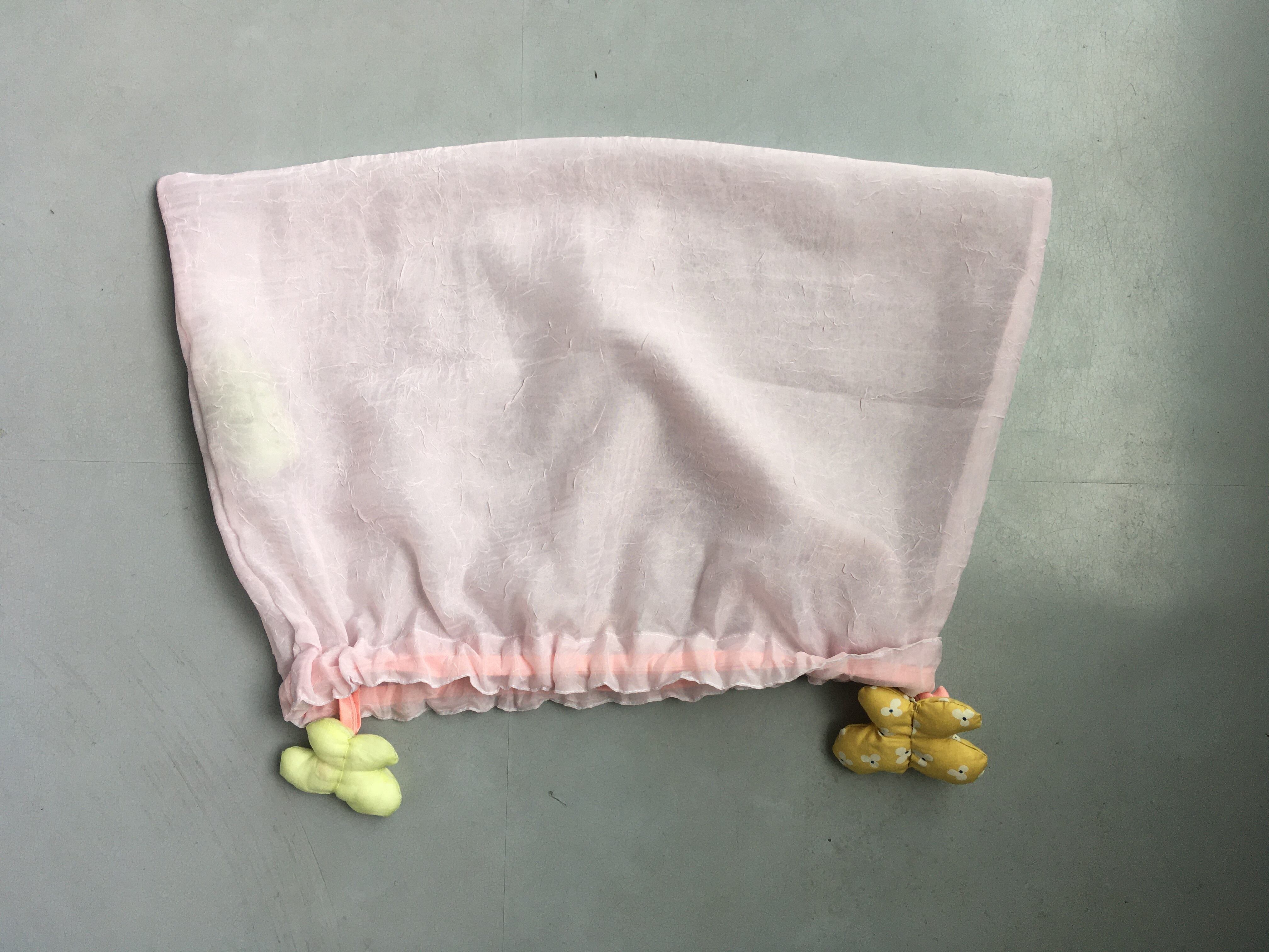 モチーフはちょうちょと、ふくろのなかに青虫。