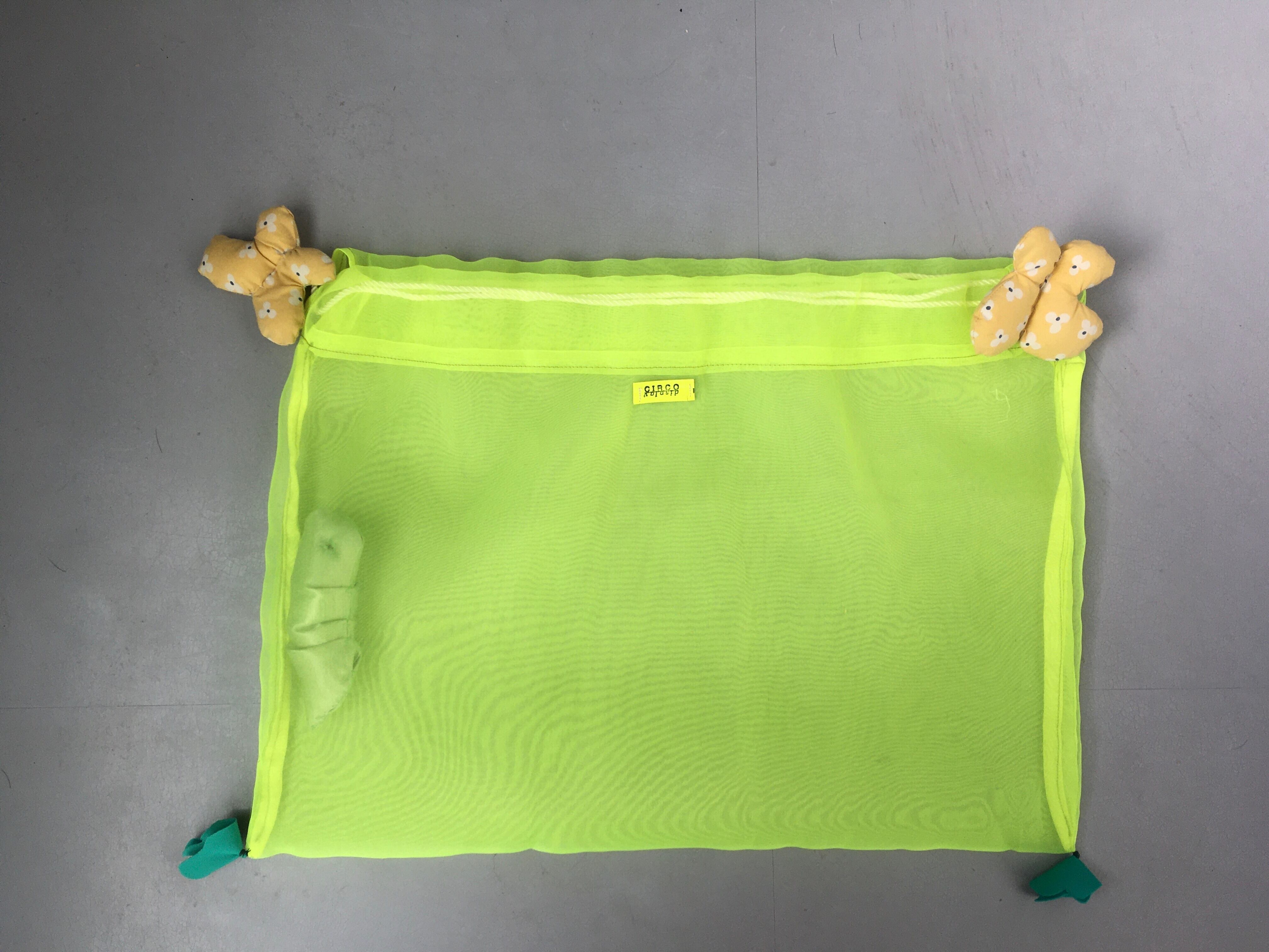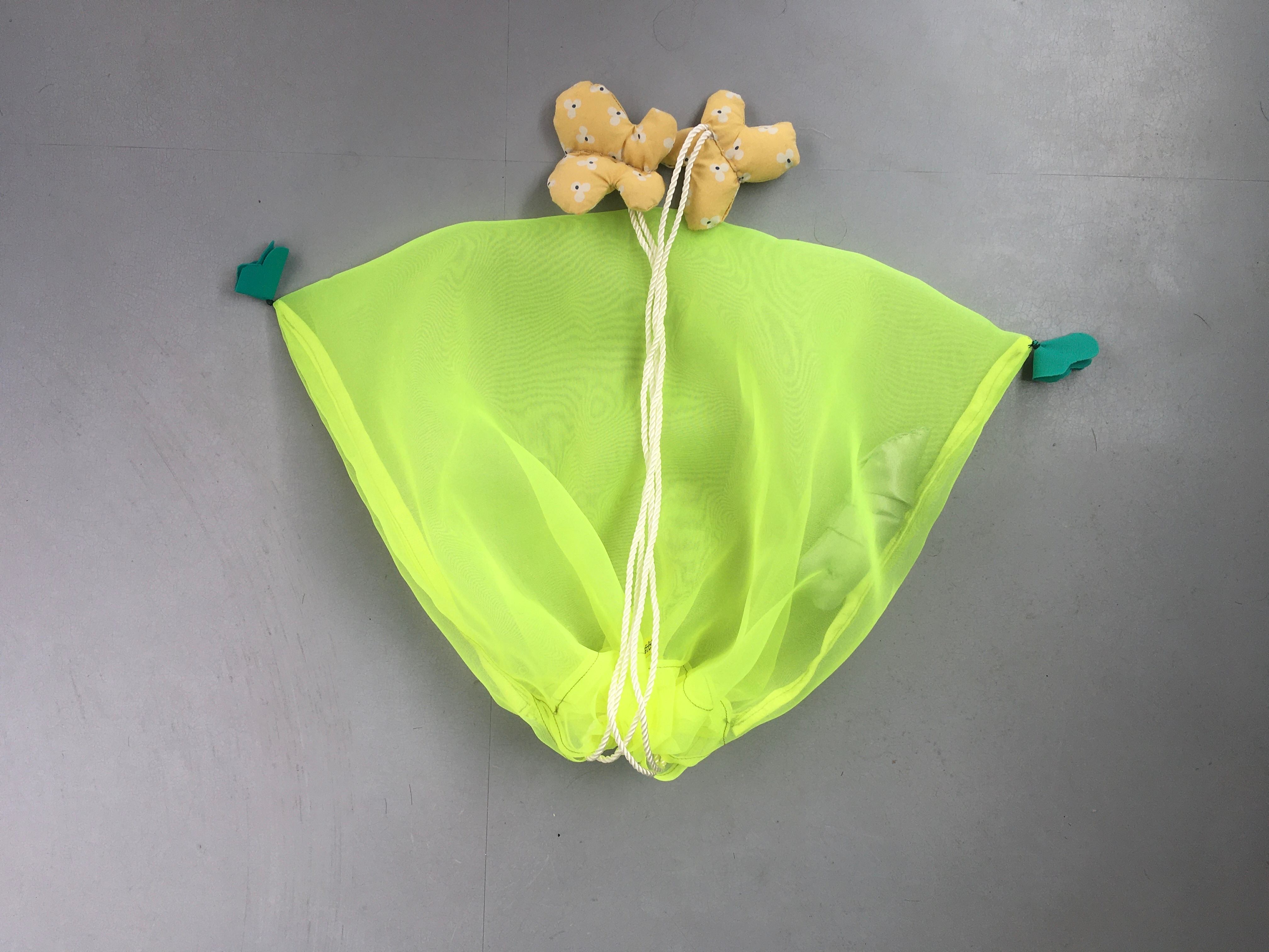 モチーフはちょうちょと、ふくろのなかに青虫。