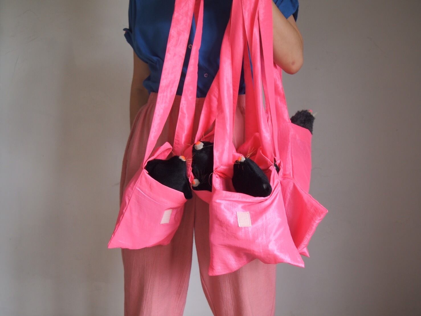 I ROBOT MOLES pinkの肩かけぶくろ M アメ付き size 23x23cm handle drop 50cm material mylon
